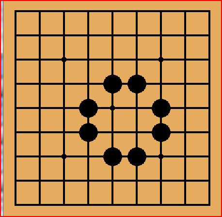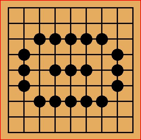 5.碁石は、相手の石に上下左右をスキマ無く囲まれると取りあげられてしまいます。