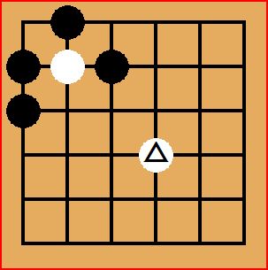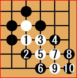 下図のような形で白石を取る事のが「シチョウ」という技です。